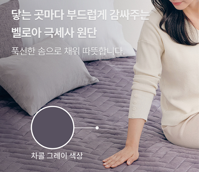 벨로아 극세사 원단을 사용하여 극세사 담요 같은 포근한 질감으로 고정밴드를 사용하여 뒤척여도 움직이지 않습니다.